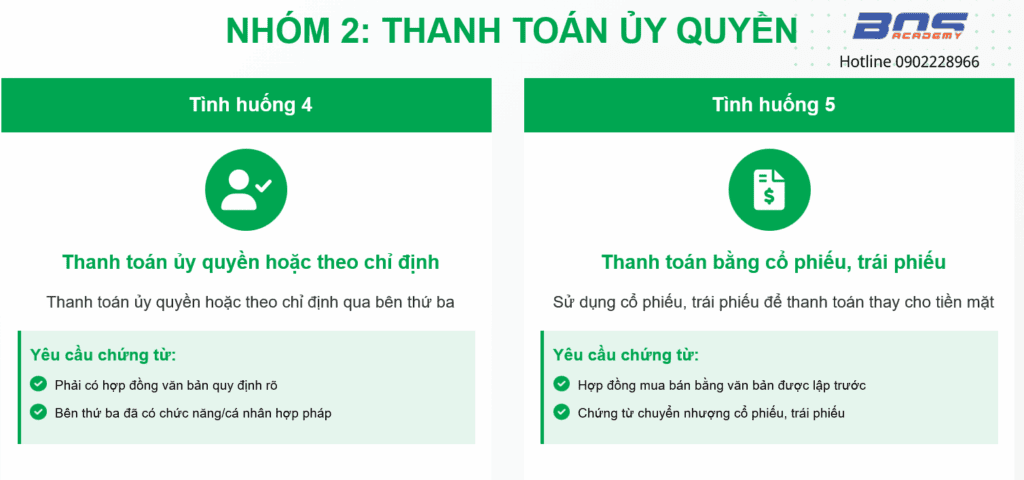 Việc hiểu rõ 10 tình huống thanh toán không dùng tiền mặt và yêu cầu chứng từ tương ứng là rất quan trọng để đảm bảo tuân thủ quy định và tránh các rủi ro về thuế.
