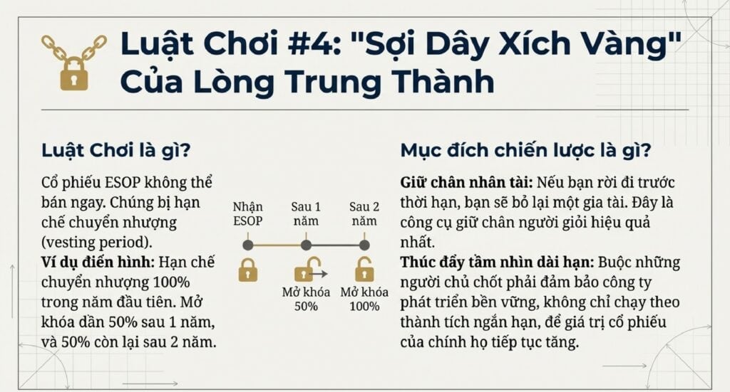 4. Điều kiện hạn chế chuyển nhượng (Vesting): Lời cam kết trung thành