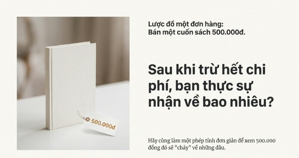 - Phần cho Vận hành: Khoảng 60.000 đồng nữa cho nhân viên, đóng gói, đi đơn, kho bãi, Chi phí kế toán, chi phí xuất hóa đơn, phần mềm bán hàng, phần mềm kế toán,…và ti tỉ thứ không tên khác.