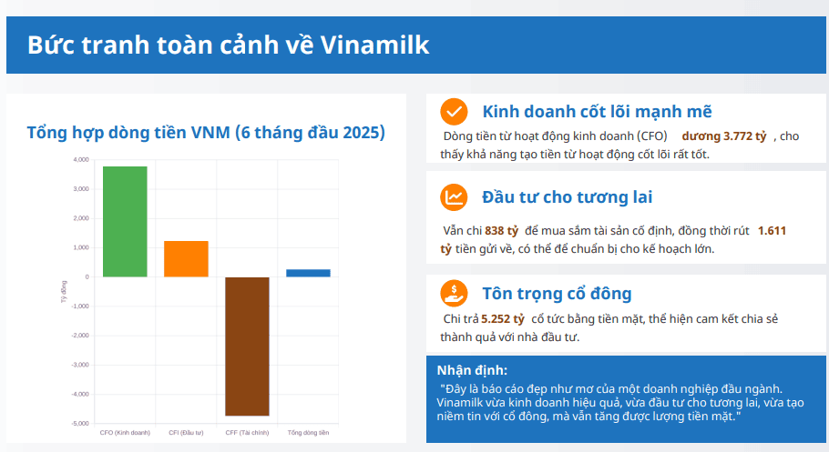 Bây giờ, chúng ta hãy cùng nhau xem xét câu chuyện thực tế của Vinamilk trong 6 tháng đầu năm 2025.