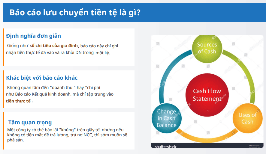 Một công ty có thể báo lãi “khủng” trên giấy tờ, nhưng nếu không có tiền mặt để trả lương, trả nợ, thì cũng giống như một gia đình có nhiều tài sản nhưng trong túi không có một đồng, sớm muộn cũng sẽ gặp rắc rối. Vì vậy, báo cáo này cực kỳ quan trọng!