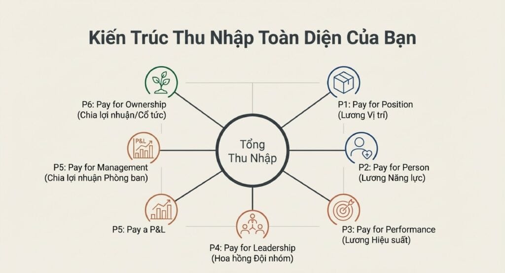 | P6 | Pay for Ownership (Chia lợi nhuận/Cổ tức) | Cơ chế thưởng dài hạn (ESOP, cổ tức), gắn kết nhân sự cốt cán với lợi nhuận toàn công ty. | Hàng năm/Chu kỳ dài hạn |