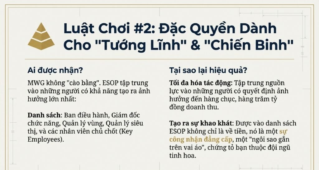 MWG không “cào bằng”. Quỹ ESOP của họ được phân bổ rất có chủ đích: