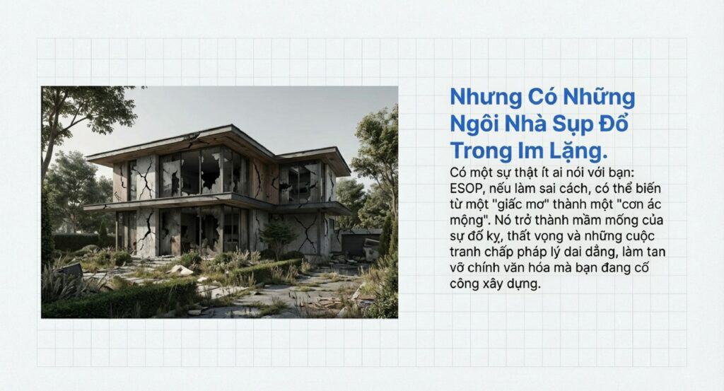 Vậy, những “cạm bẫy” chết người đó là gì? Và làm sao để nhận ra chúng trước khi quá muộn? Hãy cùng tôi bước vào những “góc khuất” của ngôi nhà ESOP.