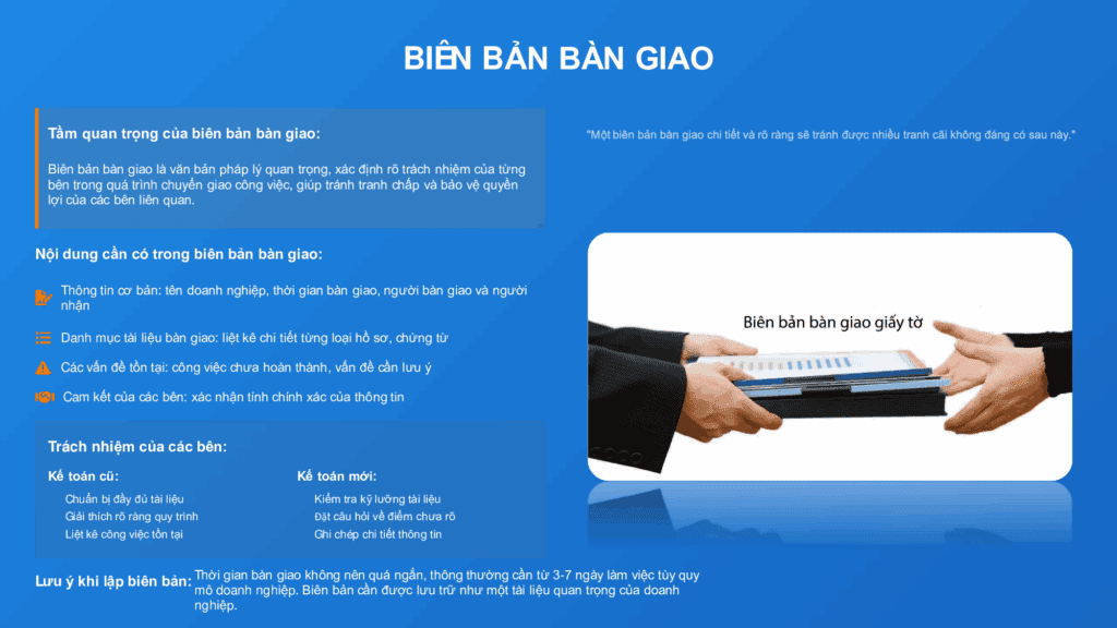 Bài viết này sẽ hướng dẫn bạn từng bước cụ thể về cách thực hiện việc bàn giao chứng từ kế toán một cách chuyên nghiệp và đúng quy định pháp luật, dựa trên kinh nghiệm thực tế và những quy định mới nhất của pháp luật Việt Nam.