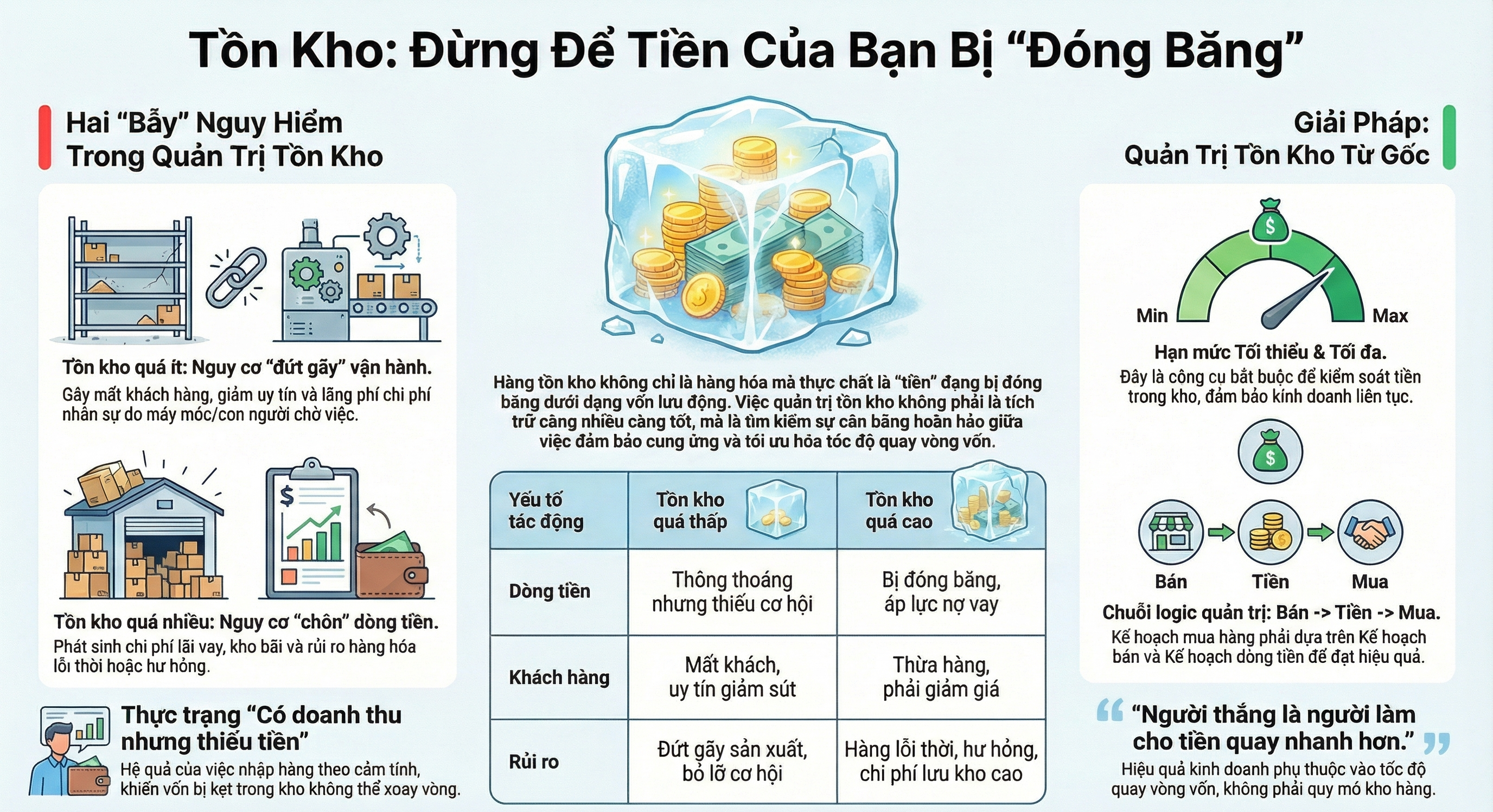 Nếu doanh nghiệp chỉ tập trung tạo ra tiền mà không kiểm soát tốt việc sử dụng tiền, thì dù doanh thu cao vẫn có thể gặp khó khăn tài chính.