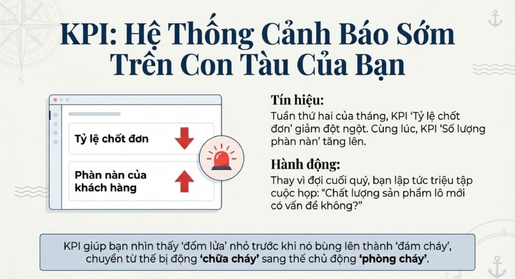 - Kết quả: Mọi người không còn mơ hồ. Họ biết chính xác đích đến của mình trong tháng này, quý này là gì. KPI biến một khẩu hiệu trừu tượng thành một lộ trình hành động rõ ràng, giúp mọi người nhìn thấy con đường mình cần đi.