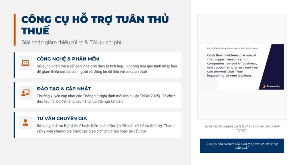Một mình chống chọi với bão thuế là điều không thể. Bạn cần đồng minh. Đó có thể là công nghệ, kiến thức, hoặc một chuyên gia. Ba trụ cột này sẽ giúp bạn xây dựng một pháo đài tuân thủ vững chắc.