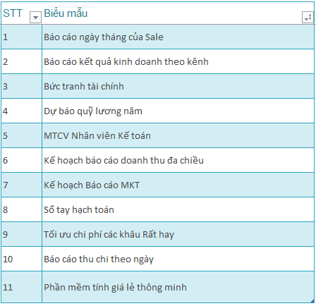 DANH MỤC BIỂU MẪU TẶNG