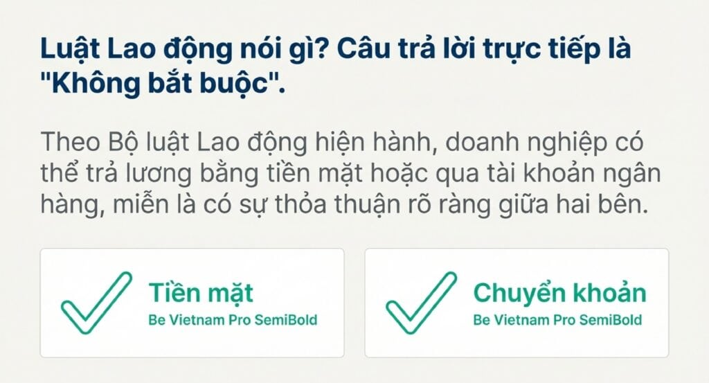 Trước hết, hãy cùng nhau làm rõ vấn đề cốt lõi: Luật Lao động có bắt buộc trả lương qua chuyển khoản không?