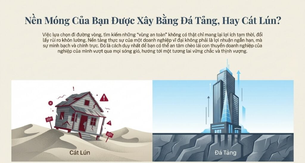 Con đường kinh doanh chưa bao giờ là dễ dàng. Giữa áp lực cạnh tranh và những quy định pháp lý đôi khi phức tạp, cảm giác lo lắng là điều khó tránh khỏi. Tuy nhiên, việc lựa chọn đi đường vòng, tìm kiếm những “vùng an toàn” không có thật như giao dịch tiền mặt chỉ mang lại lợi nhuận tạm thời, để rồi đổi lấy những rủi ro khôn lường trong dài hạn.