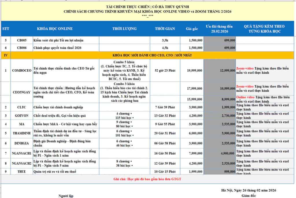 - Giảm đến 40% học phí các khóa học Tài chính Online